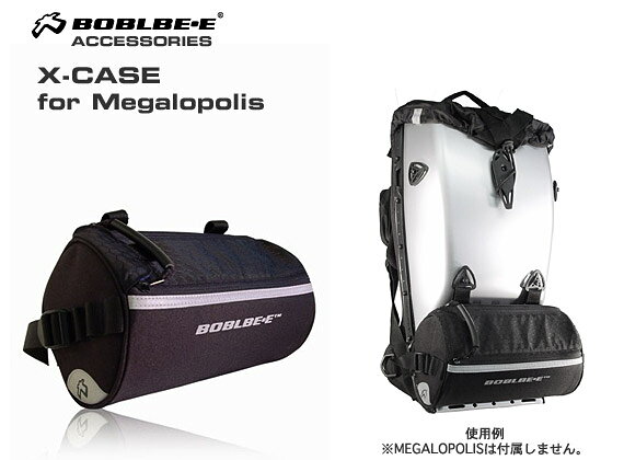 New Megalopolisに装着可能なオプションバッグ。上の写真のように大きく開き荷物の出し入れが楽に行えます。位置調整可能(着脱可能)の間仕切りがついているので、左右に分けて収納可能です。サイズ: